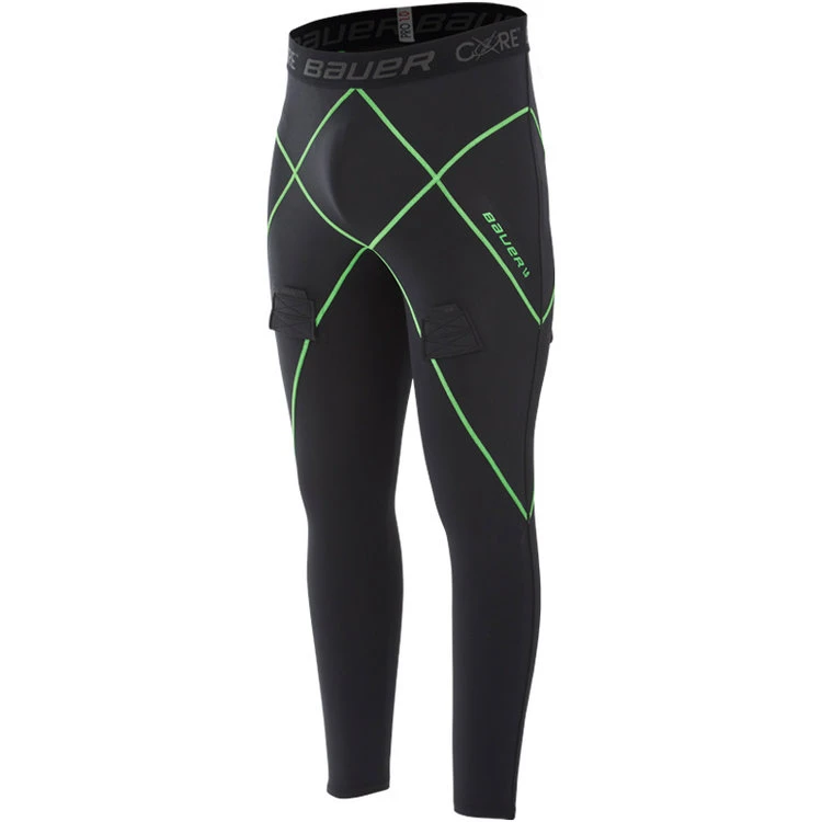 The Bauer Core 1.0 Jock Pant has a comfortable, compression feel with the Core Activation System “X” providing maximum stability and mobility. The Bauer Core 1.0 Jock Pant features 40% more directional support than a regular compression short for the lower back, pelvis, hip, and groin areas while allowing for maximum motion. Also included with the Bauer Core 1.0 Jock Pant is an integrated jock, protective cup is securely held in place with internal sling and elastic suspension system.