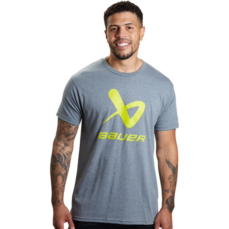 Bauer’s Core Lifestyle Lockup Short Sleeve Crew Tee has a tapered hockey fit while showing the Bauer graphic on the chest and the best part is a tag-less back neck label. Set a new trend at the rink or gym with the Bauer Lockup short sleeve tee.