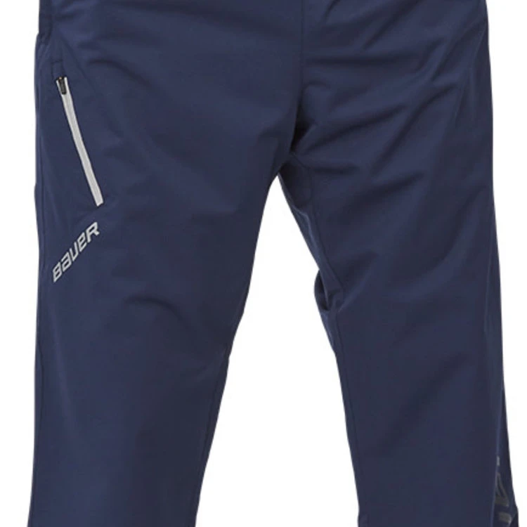 - Bauer screen-printed logo on left lower leg and right thigh.