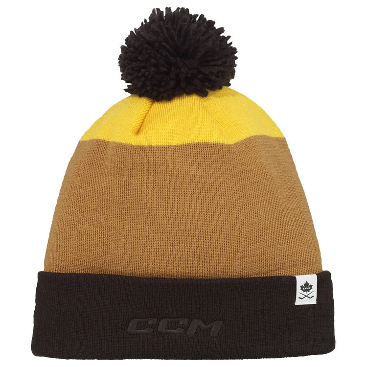 No winter wardrobe is complete without the quintessential tuque. The CCM ALL OUTSIDE pom knit hat does the trick with its classic fringe pom, ribbed cuff, and vintage-inspired color combination. Also features an embroidered CCM Hockey logo and the woven tiny leaf logo on the cuff.