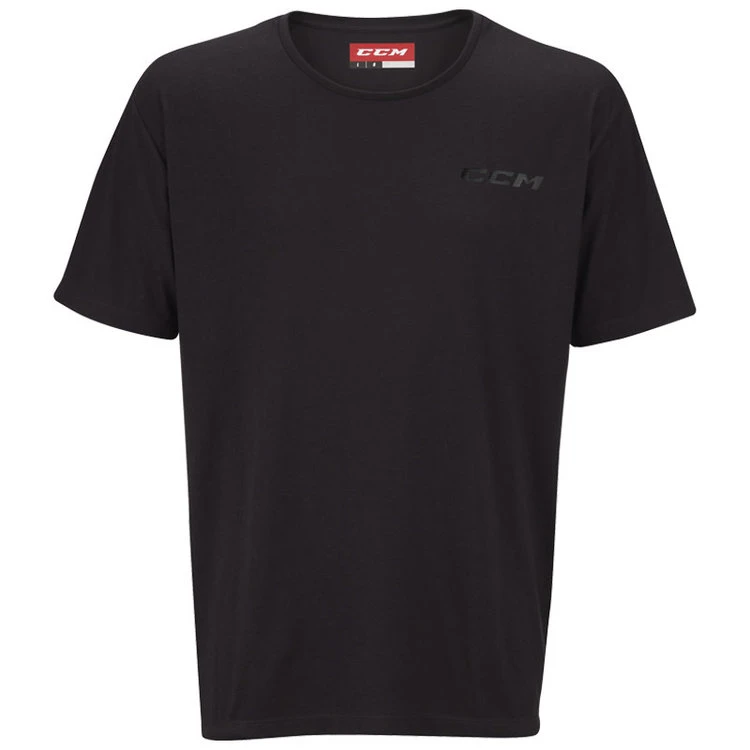 The CCM short-sleeve city tee offers a sleek black-on-black style and a soft feel cotton blend fabric for an understated yet comfortable appeal. The gel-printed CCM logo on the front and hockey city names on the back shows your appreciation for the game.