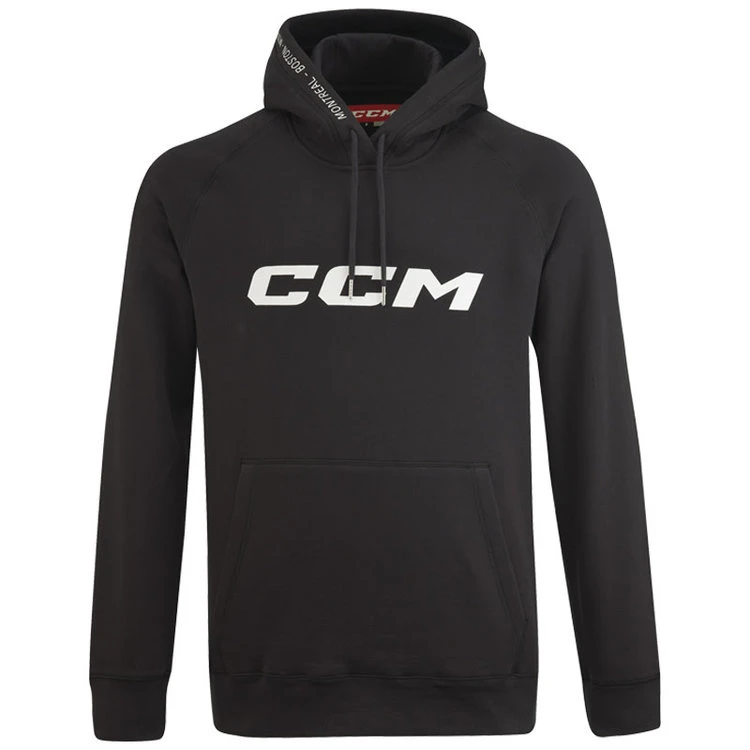 Every day is a new opportunity to perform at your best. The CCM Monochrome hoodie keeps it real by offering warmth in a soft and breathable cotton blend fabric, and comfort with a crossover-style drawcord hood. Also features a kangaroo front pocket for convenience and graphic detail on the hood for added style.