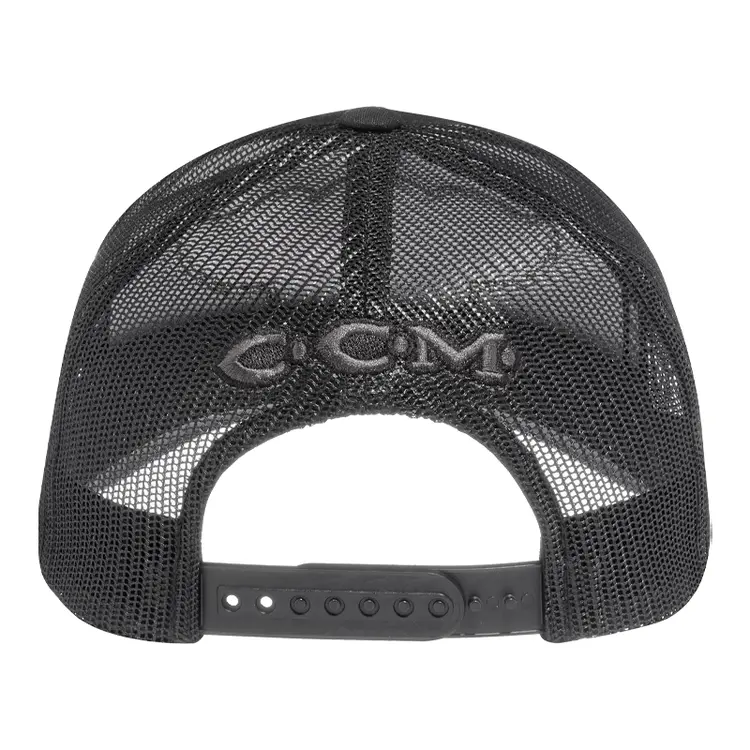 Keep your head cool in the CCM Monochrome meshback trucker cap. Featuring an adjustable meshback and a woven CCM wing patch on the front with an 1899 embroidery on the side and CCM embroidery at the center back. This cap ensures comfort and breathability no matter the situation.