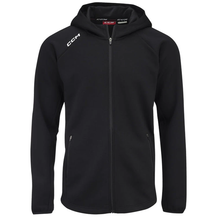 CCM’s Premium full zip tech fleece combines a breathable soft feel with a modern design built to travel on an doff the bus to the rink and gym featuring zippered pockets and a brushed jersey lined hood.
