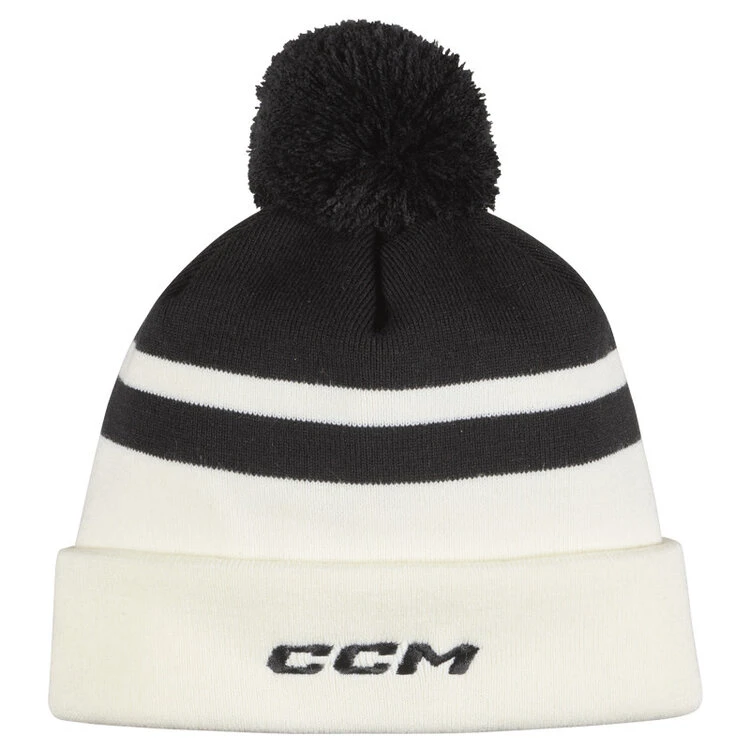 CCM’s Team Pom Knit with Fleece Liner is a cuffed knit with knitted stripe and a soft polar fleece lining with a CCM embroidered logo and topped with a chunky pom. The CCM Team Fleece Pom Knit full fleece liner keeps your head warm and comfy all day or night long.