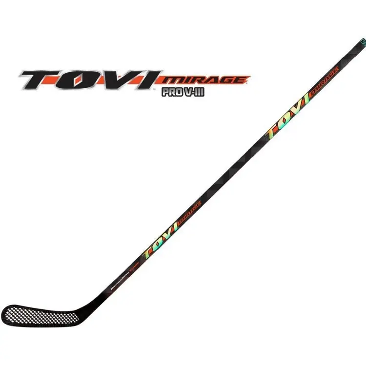 The MIRAGE is Tovi’s original flagship stick completely upgraded. Tricked out in fiery stealth orange with 3 dimensional foil decaling, the MIRAGE PRO V-III is handcrafted from the most durable, lightweight 18K carbon fiber and comes with Tovi’s Standard 90 Day warranty. The low-kick flex point combined with our patented perforated aerodynamic blade design, provides lightning-fast release for snap shots while on the go!op settling for inferior, undifferentiated sticks and transition to the most innovative technology in hockey. Your game deserves the best!