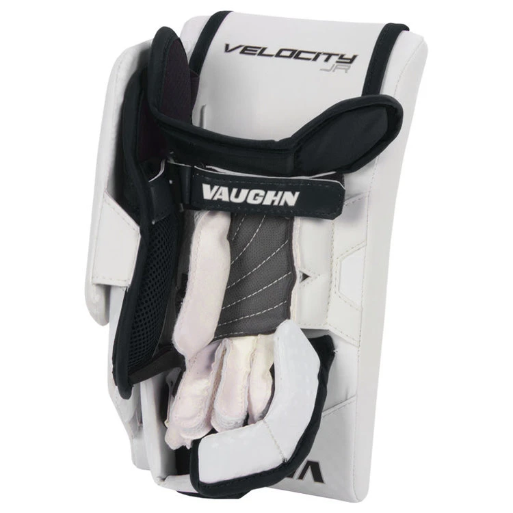 Vaughn’s Velocity V10 Junior Goal Blocker brings a deep board top bend for puck deflection while the palm has been designed for an improved fit and comfort. The Velocity V10 Junior Blocker has a large index side finger protection and the floating cuff design increases wrist movement. With new V10 graphics for a distinctive look the Velocity V10 Blocker will help you with the big save.